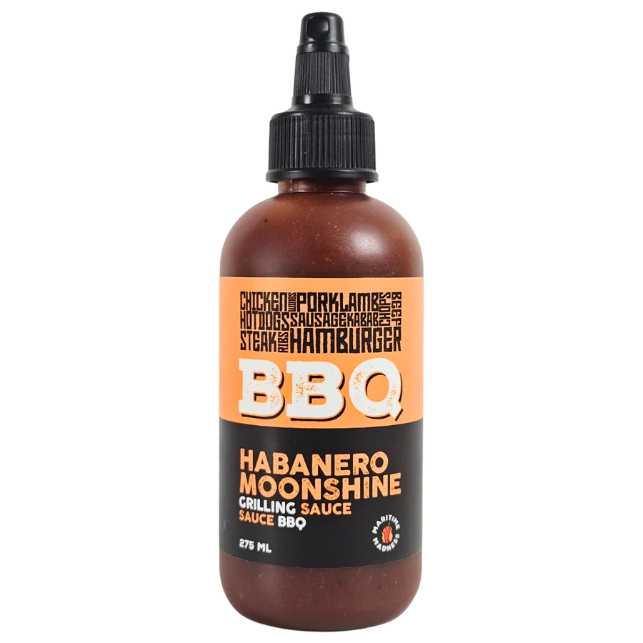 Indulge in the fiery flavour of our Habanero Moonshine Grilling BBQ Sauce, meticulously crafted by the talented crew at Maritime Madness. This peppery, smoky, and spicy sauce is infused with the unique taste of PEI moonshine from the Artisan Distillery in Rollo Bay, elevating your grilling experience to new heights.
