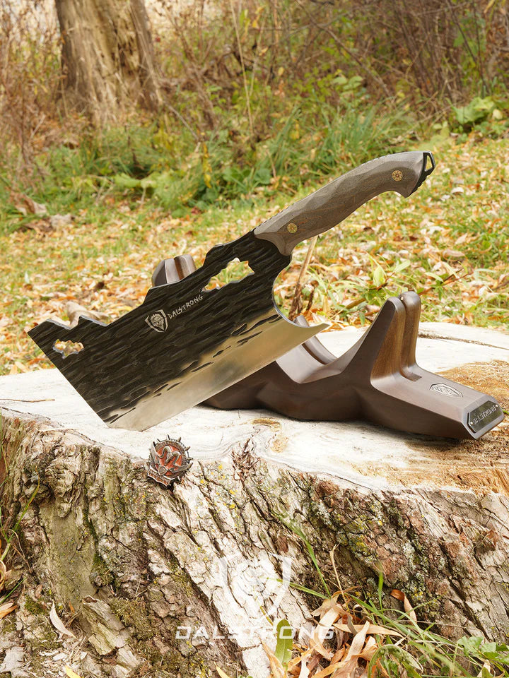 The Barbarian Obliterator Cleaver weighs in at over 2.5lbs and features a broad, square, deep blade that tapers from a thick spine down to a fine edge. Cleave your way through meat, bone, and anything else that comes between blade and board.